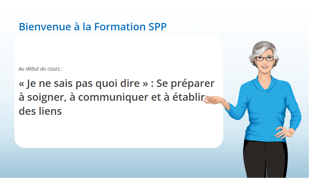 L’acquisition de ces compétences et comportements dans votre pratique vous aidera à soutenir, à communiquer et à établir des liens avec toute personne mourante et sa famille.