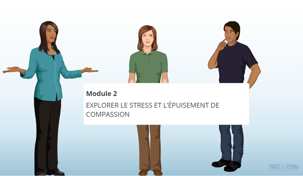 Dans ce module, vous apprendrez comment le stress peut avoir une influence positive et négative dans la vie. Vous explorerez les sources de stress dans votre vie, et évaluerez où vous en êtes dans le continuum de l’épuisement de compassion.