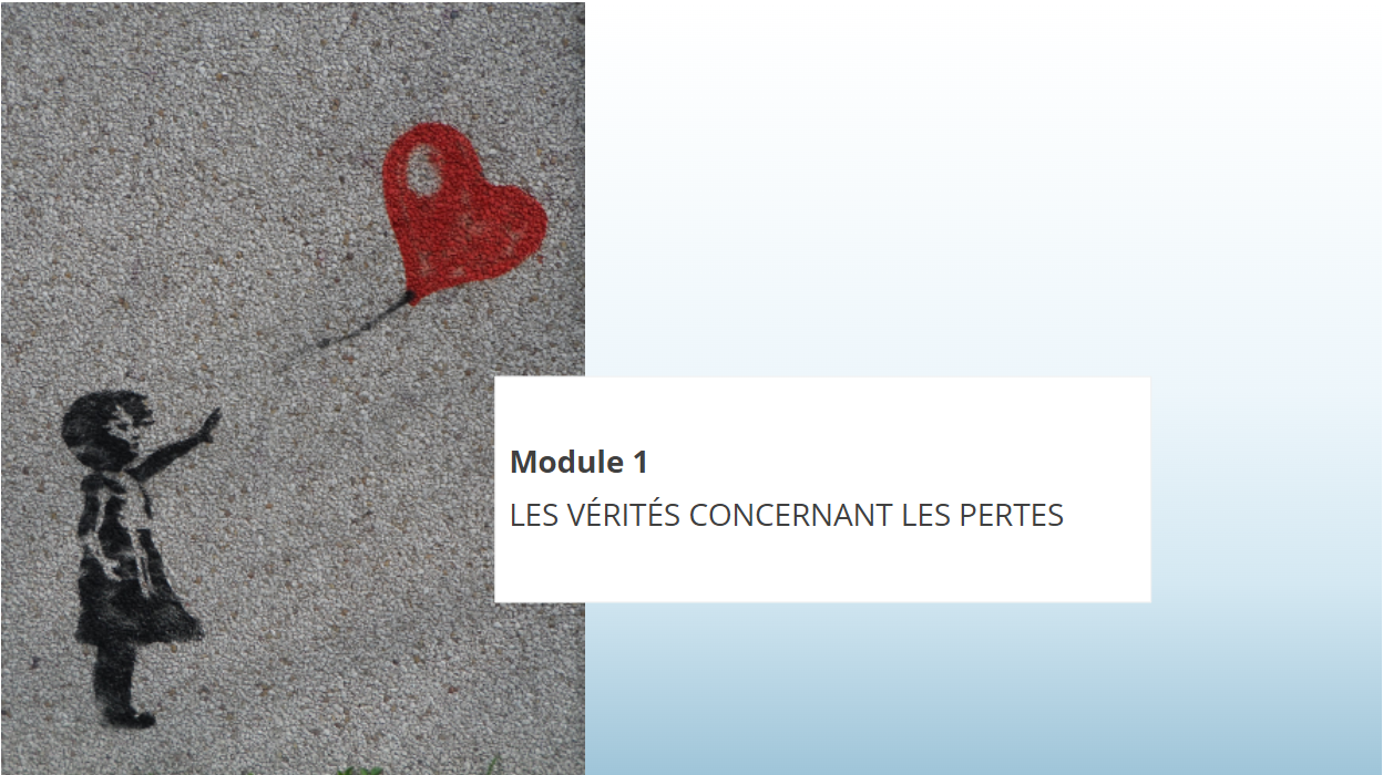 Les vérités sur les pertes sont de l’information de base qui devrait être enseignée à tous. Comprendre ces simples vérités est essentiel pour fournir des soins psychosociaux compatissants, ainsi que pour vivre pleinement la vie. Allons-y!