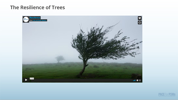 Module 1 explores the concept of resilience, using trees as an example of how resilience benefits all people, including caregivers. Develop practical ways to build resilience as part of your daily life.